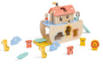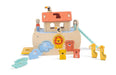 Includes a variety of wooden animals and a Noah’s Ark boat with matching slots